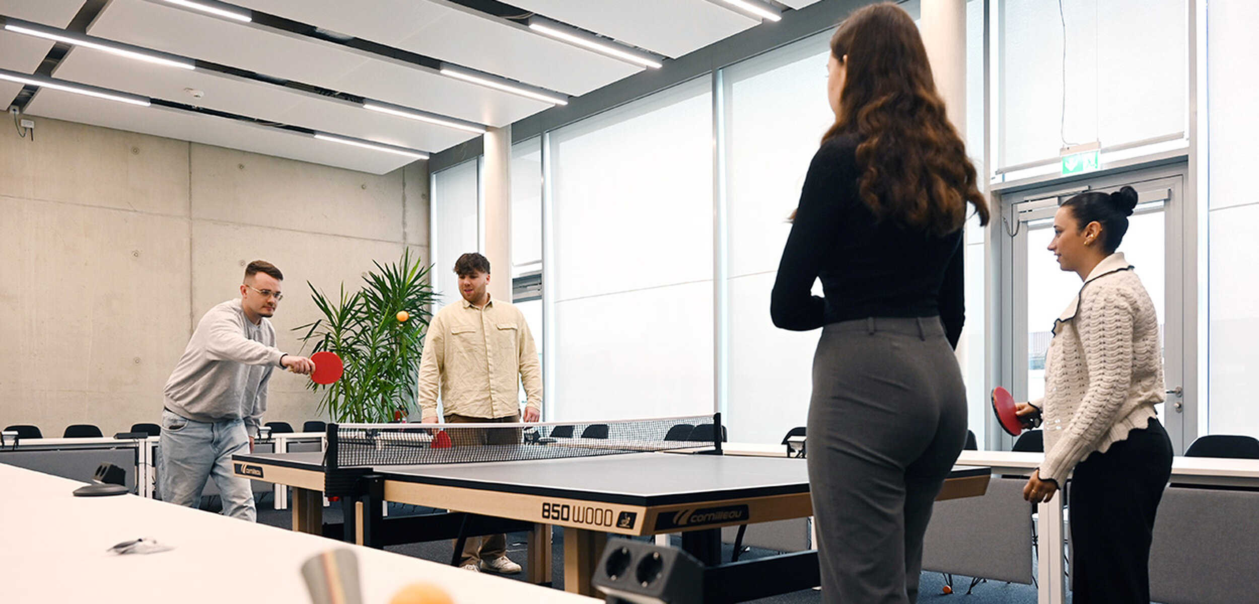 Modern working conditions: We provide you with everything you need to work in our state-of-the-art open office on the Medienhaus campus. You can reach us thanks to good public transport connections. If you are travelling by car, there is also free parking available.